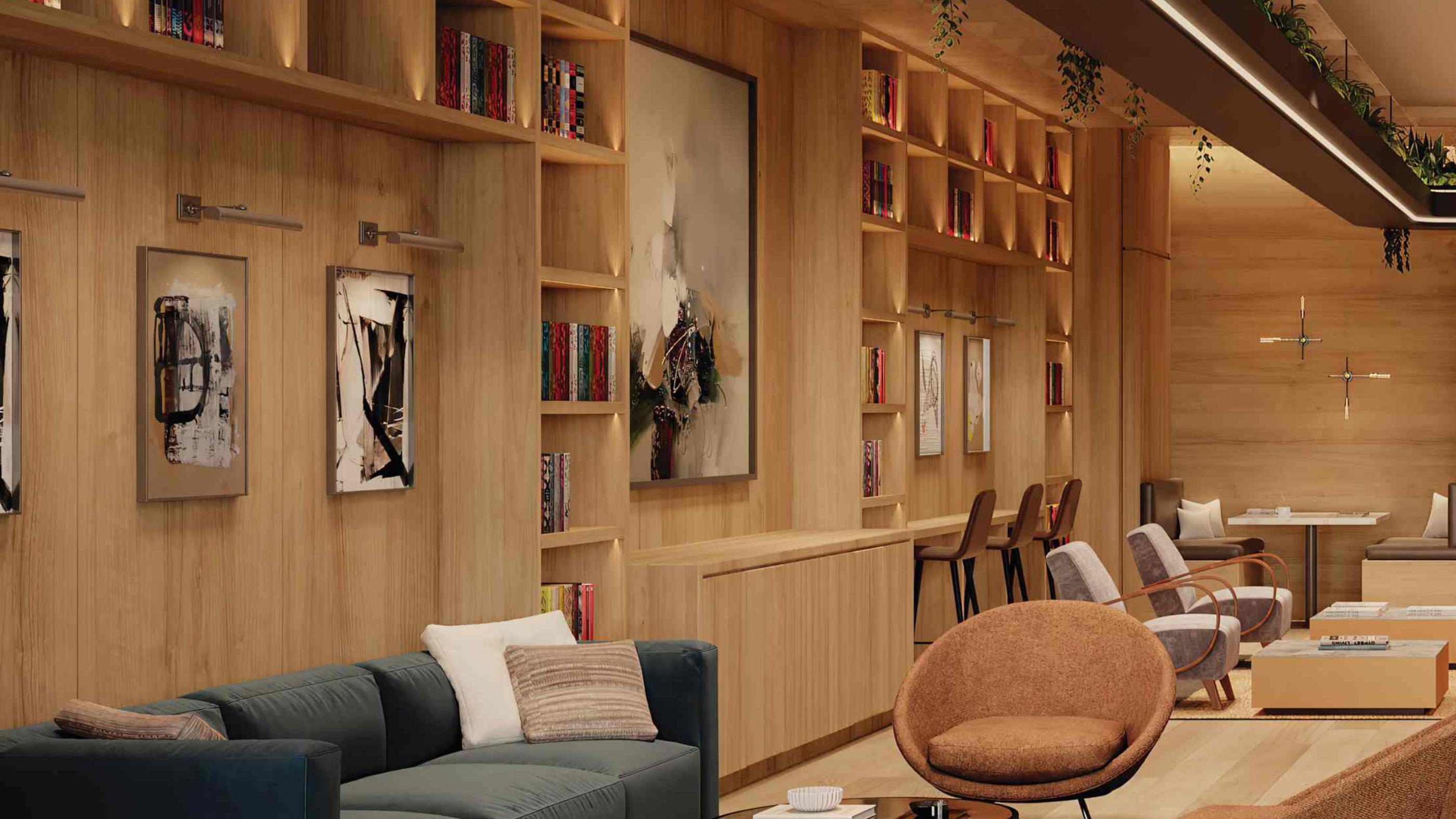 “The Long Island City neighborhood inspired a modern and organic residences, infused with warm tones that evoke a profound sense of home. Our designs feature inviting finishes, creating spaces that resonate with a homey, welcoming atmosphere.” – Orlando Rodriguez, Director of Whitehall Interiors